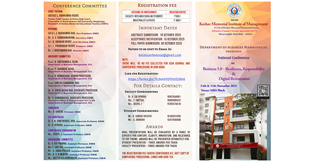 Keshav Memorial Educational Society adds another feather to its cap. Keshav Memorial Educational Society is proud to announce its new Business Management College, Keshav Memorial Institute of Management (KMIM).